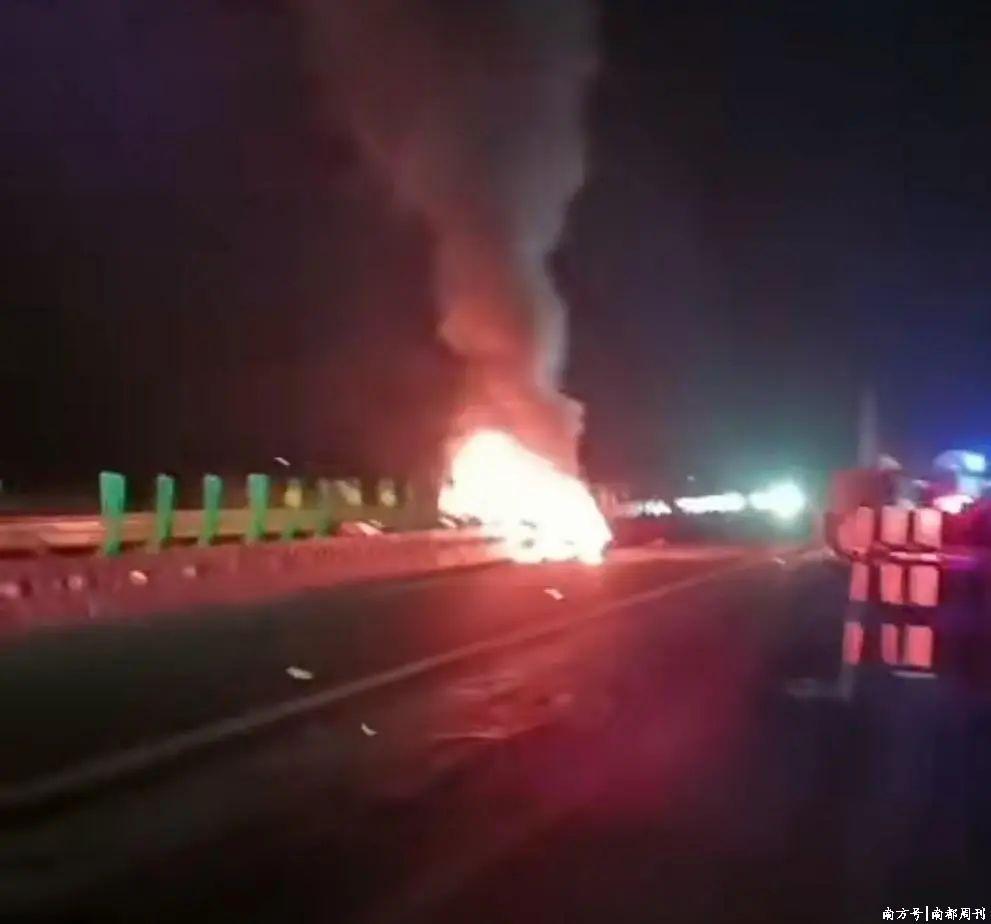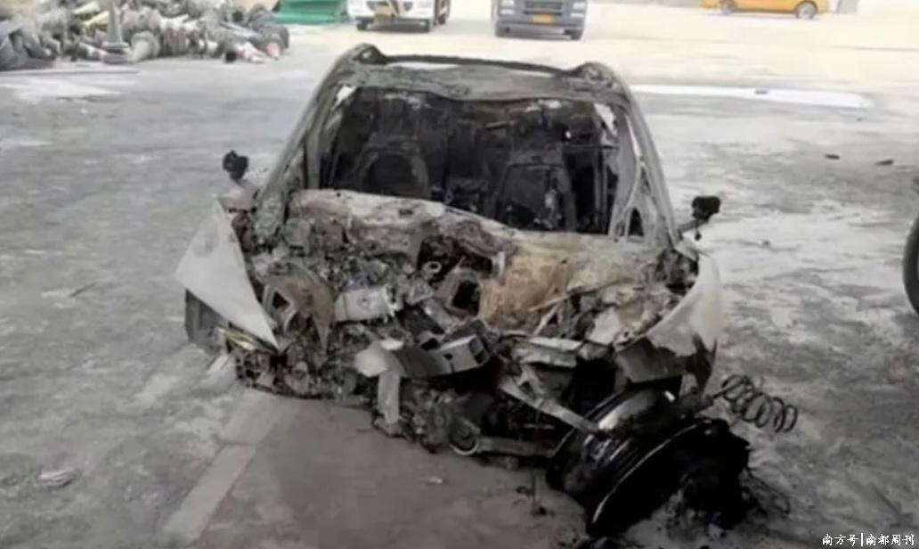 南都此前报道,曝光于网络的视频及图片显示,安徽一新能源车撞上高速公路中间护栏起火燃烧,另有被烧毁的车架显示事故车辆为小米SU7,车头已经基本全毁。